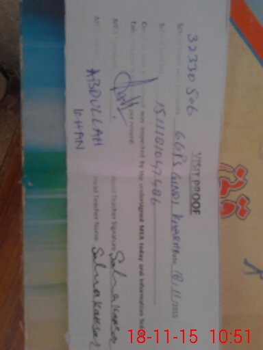 | Monitoring Date: 18-11-2015 | Start Time: 18-11-2015 10:34 AM | End Time: 18-11-2015 10:52 AM | Name of MEA: Ab**** Kh**** | |