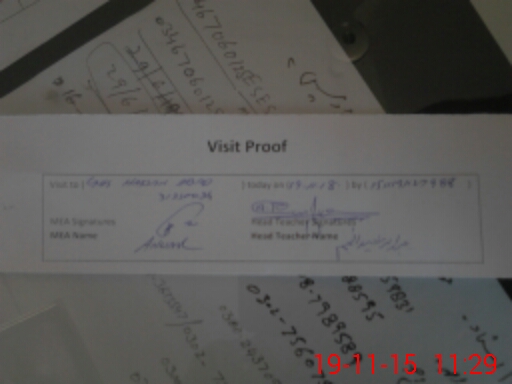 | Attendance Register | Head Teacher | MEA with School | Visit Proof |