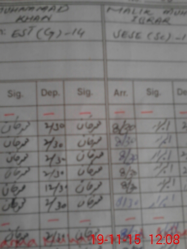 | CNIC | Full Name | Designation | R/C | Absence During Last Calender Month |