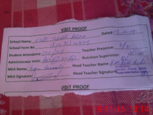| Attendance Register | Head Teacher | MEA with School | Visit Proof |