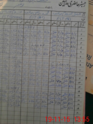 | CNIC | Full Name | Designation | R/C | Absence During Last Calender Month |