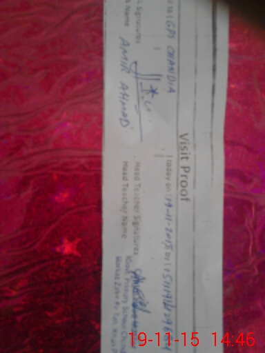 | School Visited by School Health & Nutrition Supervisor (No. of Visits) | 1 | Name1: | Sohail Munir | Name2: | Nil |