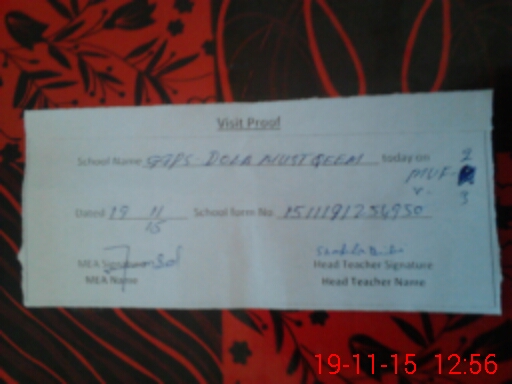| Attendance Register | Head Teacher | MEA with School | Visit Proof |