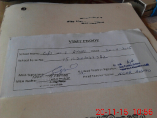 | Attendance Register | Head Teacher | MEA with School | Visit Proof |
