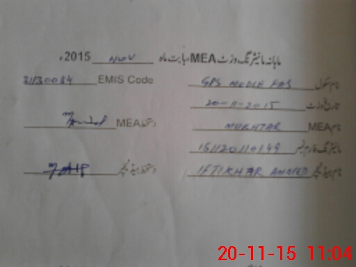 | Monitoring Date: 20-11-2015 | Start Time: 20-11-2015 10:51 AM | End Time: 20-11-2015 11:07 AM | Name of MEA: Mu**** ah**** BN**** 29 | |