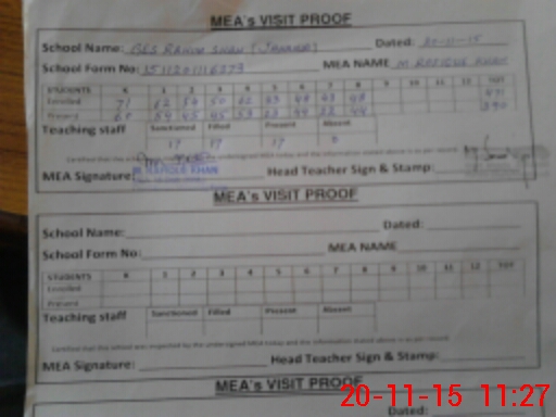 | Attendance Register | Head Teacher | MEA with School | Visit Proof |