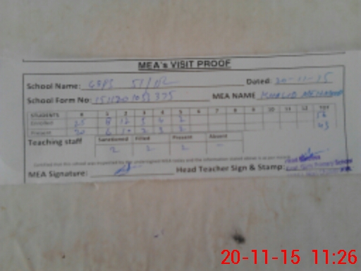 | Attendance Register | Head Teacher | MEA with School | Visit Proof |