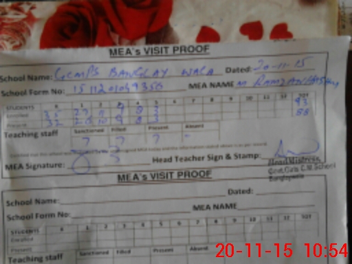 | Attendance Register | Head Teacher | MEA with School | Visit Proof |