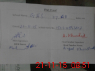 | School Visited by School Health & Nutrition Supervisor (No. of Visits) | 1 | Name1: | Muzamal | Name2: | |