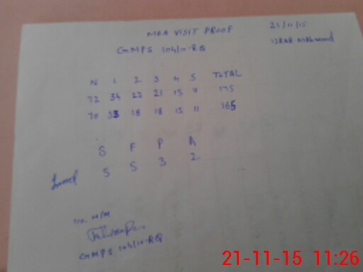 | Monitoring Date: 21-11-2015 | Start Time: 21-11-2015 11:04 AM | End Time: 21-11-2015 12:20 PM | Name of MEA: Is**** Me**** | |