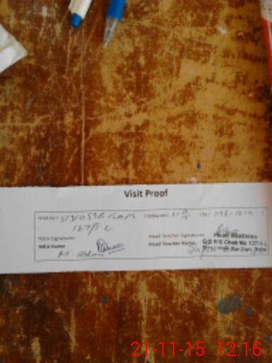 | School Visited by School Health & Nutrition Supervisor (No. of Visits) | 1 | Name1: | M YOUNIS SHNS | Name2: | O |