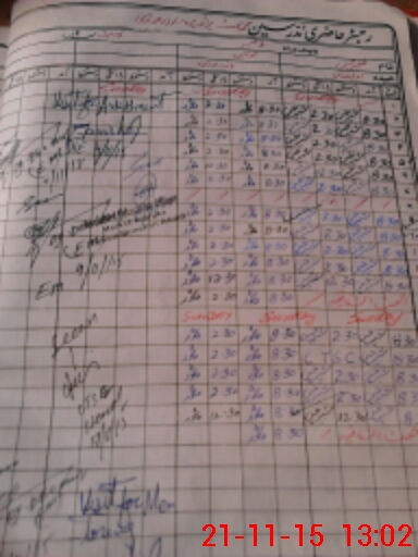 | CNIC | Full Name | Designation | R/C | Absence During Last Calender Month |