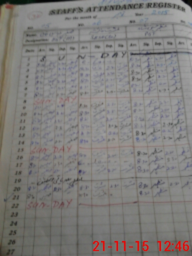 | CNIC | Full Name | Designation | R/C | Absence During Last Calender Month |