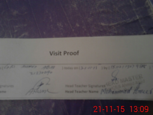 | Attendance Register | Head Teacher | MEA with School | Visit Proof |