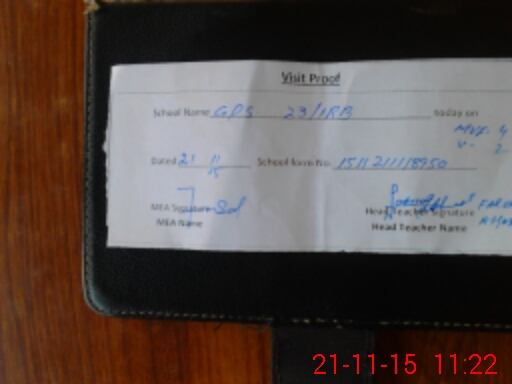 | Attendance Register | Head Teacher | MEA with School | Visit Proof |