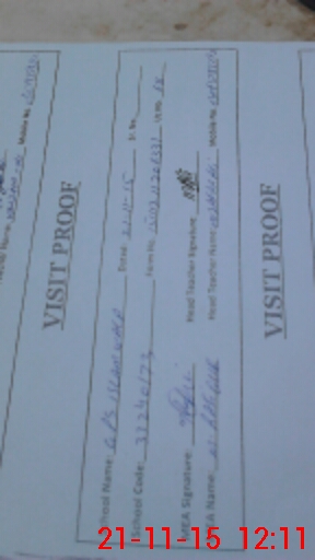 | School Visited by School Health & Nutrition Supervisor (No. of Visits) | 1 | Name1: | M NASIR KHAN | Name2: | |