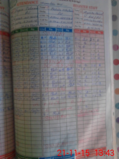 | CNIC | Full Name | Designation | R/C | Absence During Last Calender Month |