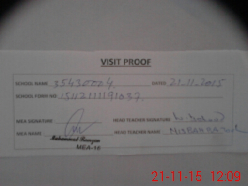 | Attendance Register | Head Teacher | MEA with School | Visit Proof |