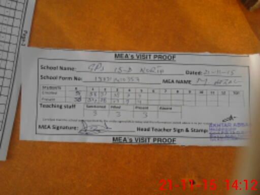 | EMIS Code: 36410289 | Name of School: GPS 15/D NORTH, P/O 25 PUL, ABDUL HAKIM | |||