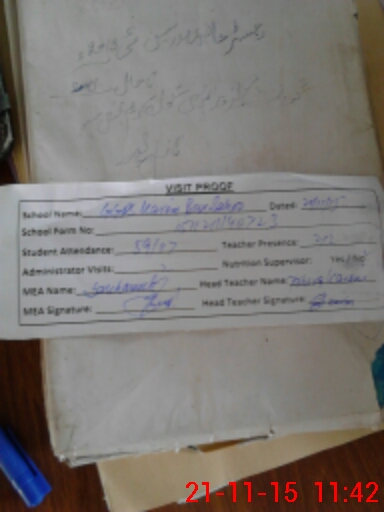 | Attendance Register | Head Teacher | MEA with School | Visit Proof |