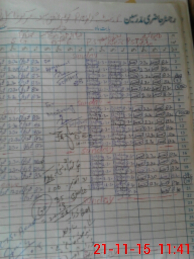 | CNIC | Full Name | Designation | R/C | Absence During Last Calender Month |