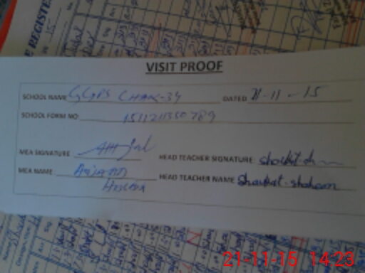 | Attendance Register | Head Teacher | MEA with School | Visit Proof |