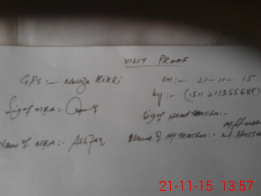 | Attendance Register | Head Teacher | MEA with School | Visit Proof |