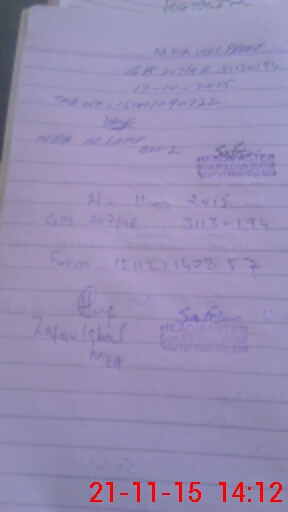 | Monitoring Date: 21-11-2015 | Start Time: 21-11-2015 01:41 PM | End Time: 21-11-2015 02:14 PM | Name of MEA: Za**** Iq**** BN**** | |