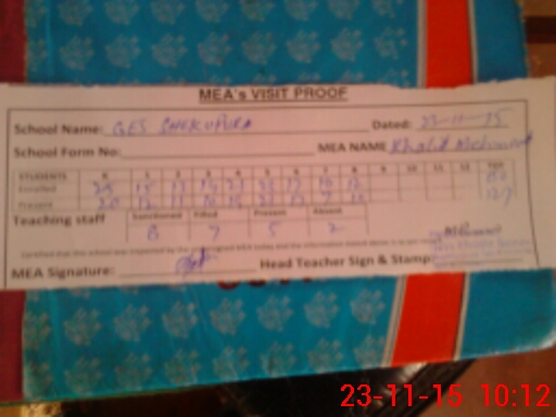 | Attendance Register | Head Teacher | MEA with School | Visit Proof |