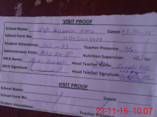 | Attendance Register | Head Teacher | MEA with School | Visit Proof |