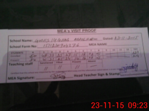 | Attendance Register | Head Teacher | MEA with School | Visit Proof |