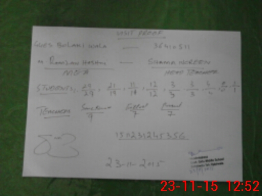 | Attendance Register | Head Teacher | MEA with School | Visit Proof |