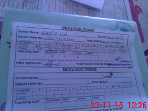 | Attendance Register | Head Teacher | MEA with School | Visit Proof |