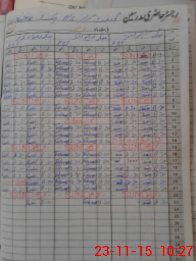 | CNIC | Full Name | Designation | R/C | Absence During Last Calender Month |