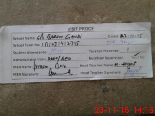 | Attendance Register | Head Teacher | MEA with School | Visit Proof |