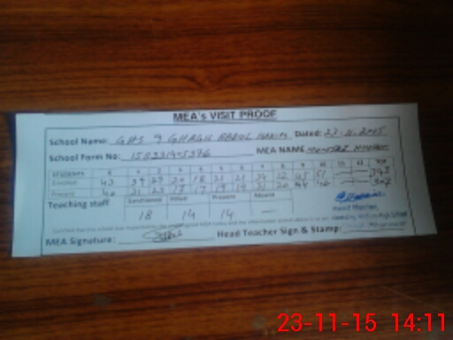 | Attendance Register | Head Teacher | MEA with School | Visit Proof |