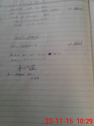 | Monitoring Date: 23-11-2015 | Start Time: 23-11-2015 10:12 AM | End Time: 23-11-2015 10:57 AM | Name of MEA: Li**** Al**** BN**** 11 | |
