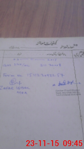 | Monitoring Date: 23-11-2015 | Start Time: 23-11-2015 09:04 AM | End Time: 23-11-2015 09:55 AM | Name of MEA: Za**** Iq**** BN**** | |