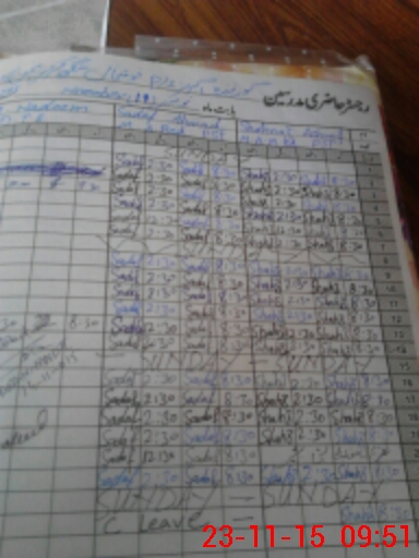 | CNIC | Full Name | Designation | R/C | Absence During Last Calender Month |