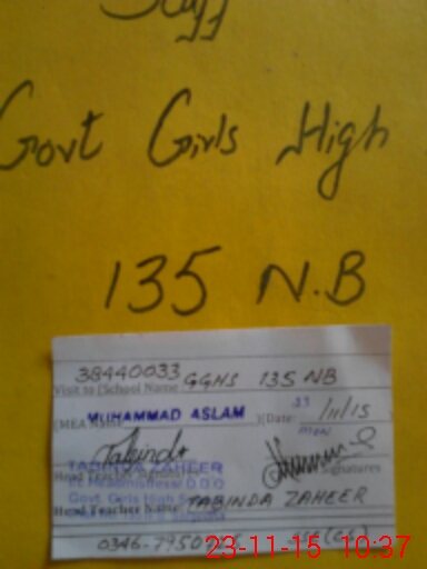 | EMIS Code: 38440033 | Name of School: GGHS CHAK NO.135 NB | |||