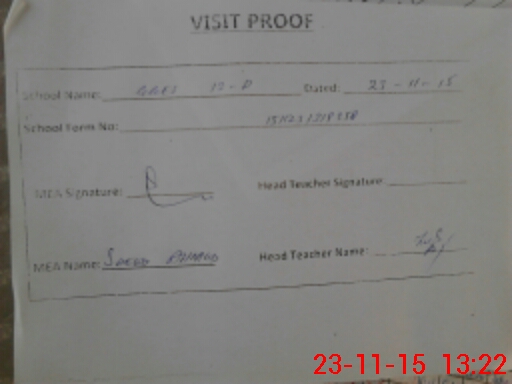 | Attendance Register | Head Teacher | MEA with School | Visit Proof |