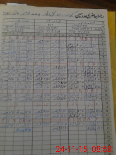 | CNIC | Full Name | Designation | R/C | Absence During Last Calender Month |