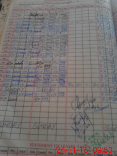 | CNIC | Full Name | Designation | R/C | Absence During Last Calender Month |