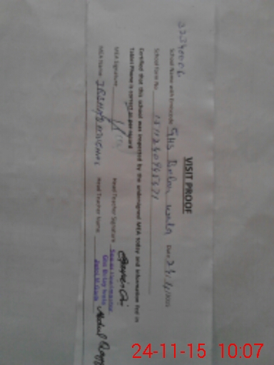 | Certified that this School was Inspected by the Undersigned MEA/DMO Today and the Information Stated Above is as Per Record. | |||||