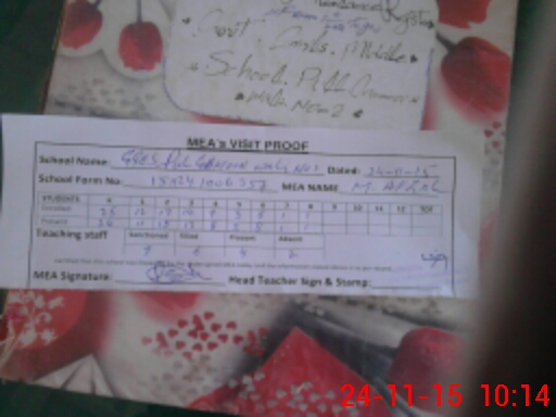 | Attendance Register | Head Teacher | MEA with School | Visit Proof |