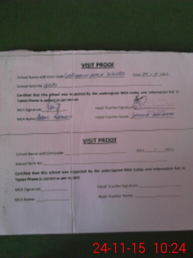 | Attendance Register | Head Teacher | MEA with School | Visit Proof |