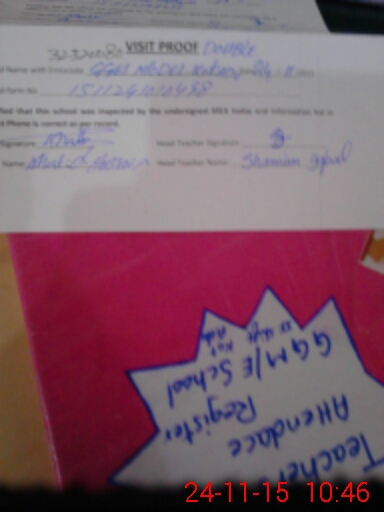 | Attendance Register | Head Teacher | MEA with School | Visit Proof |