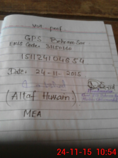 | EMIS Code: 31150160 | Name of School: GPS BEHRAAM SAR | |||