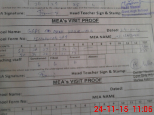 | Certified that this School was Inspected by the Undersigned MEA/DMO Today and the Information Stated Above is as Per Record. | |||||