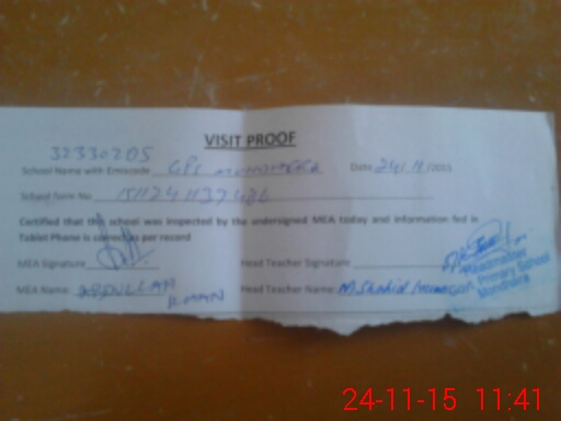 | Attendance Register | Head Teacher | MEA with School | Visit Proof |
